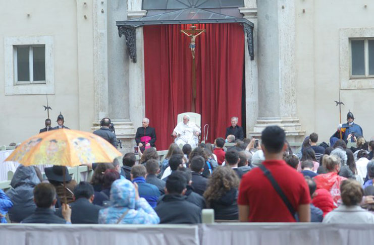 “Tante volte – ha proseguito a braccio – stiamo giù, non abbiamo sentimenti, non troviamo consolazione, non ce la facciamo. Sono quei giorni grigi, e ce ne sono tanti nella vita. Ma il pericolo è il cuore grigio: quando questo grigio arriva al cuore e l’ammala, e c’è gente che vive con questo cuore grigio. Non si può portare avanti un’aridità spirituale con il cuore grigio: il cuore deve essere luminoso, aspettare la consolazione, e se non entra aspettarla con speranza, ma non chiuderla nel grigio”.