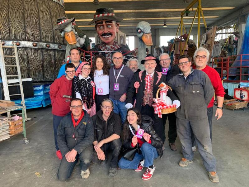 Oggi, nel capannone di via Fermi , dove si stanno scaldando i motori per la prima sfilata dei grandi carri allegorici che si terrà domani, è arrivata, per una visita e un saluto, Kenia Fernandes, ballerina e modella brasiliana, guest star della prima sfilata.