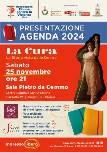 Ma se la storia la riscrivesse una donna? Sarebbe una storia di CURA. Una storia che parla di cura popolare delle erbarie e delle empiriche, di cura spirituale delle sacerdotesse e delle diaconesse, di cura del materno delle ostetriche, di cura colta e dotta delle alchimiste e delle mediche, di cura ancillare delle infermiere e persino di cura dei beni familiari delle mercantesse. La nostra proposta alle due ospiti è di sintetizzare questi argomenti trattati nell’agenda e intervallare le letture con brani musicali scelti da Cinzia e dalla sua compagnia, in sintonia con l’argomento letto. Il tutto dovrebbe durare circa un’ora. Ma si sa, da cosa nasce cosa.