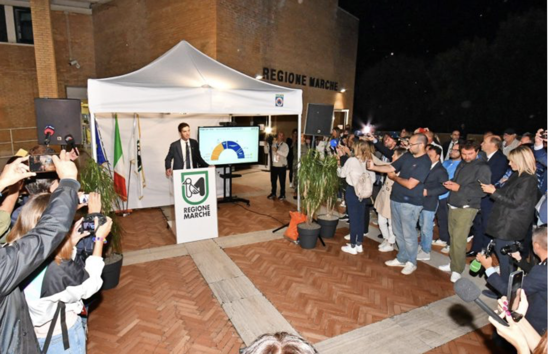 Francesco Acquaroli, di Fratelli d’Italia, è stato confermato presidente della Regione Marche, con 8 punti di distacco su Matteo Ricci, candidato del “campo largo”.